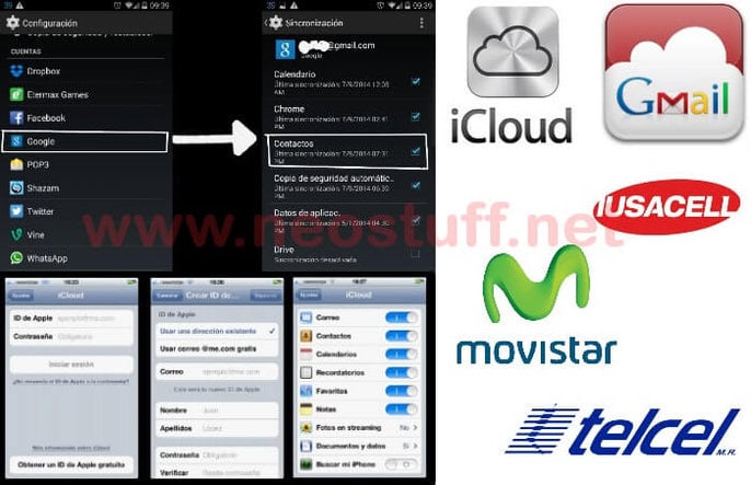 De manera similar a los servicios de google, los iphone cuentan con un servicio llamado iCloud el cual permite sincronizar notas, calendario y contactos entre otros. Este lo encontramos bajo los menús de configuración y cuentas