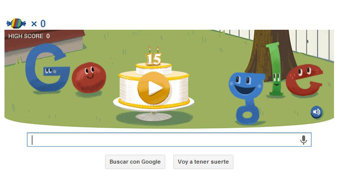 Hoy el grande de la Informática Google ha cumplido 15 años, y para celebrarlo en la página de su buscador podemos encontrar un nuevo Doodle(Como es su costumbre en las fechas importantes) donde podemos celebrar con las letras que forman la palabra, golpeando una piñata.