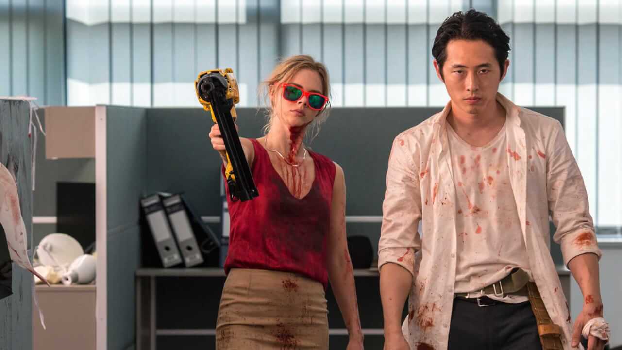 Con una propuesta destinada a lo personal y rodeada de miles de cubículos, Mayhem se enfoca en el tedio de la rutina laboral, del encierro que representa el sistema y de los límites de una burocracia donde terceros mandan. A modo de comedia con elementos slasher, la película no decide contar historias particulares y dedica toda su atención a un pilar fundamental: Derek (Steven Yeun), un empleado más de la corporación que empieza a tener problemas con las políticas de la empresa.
